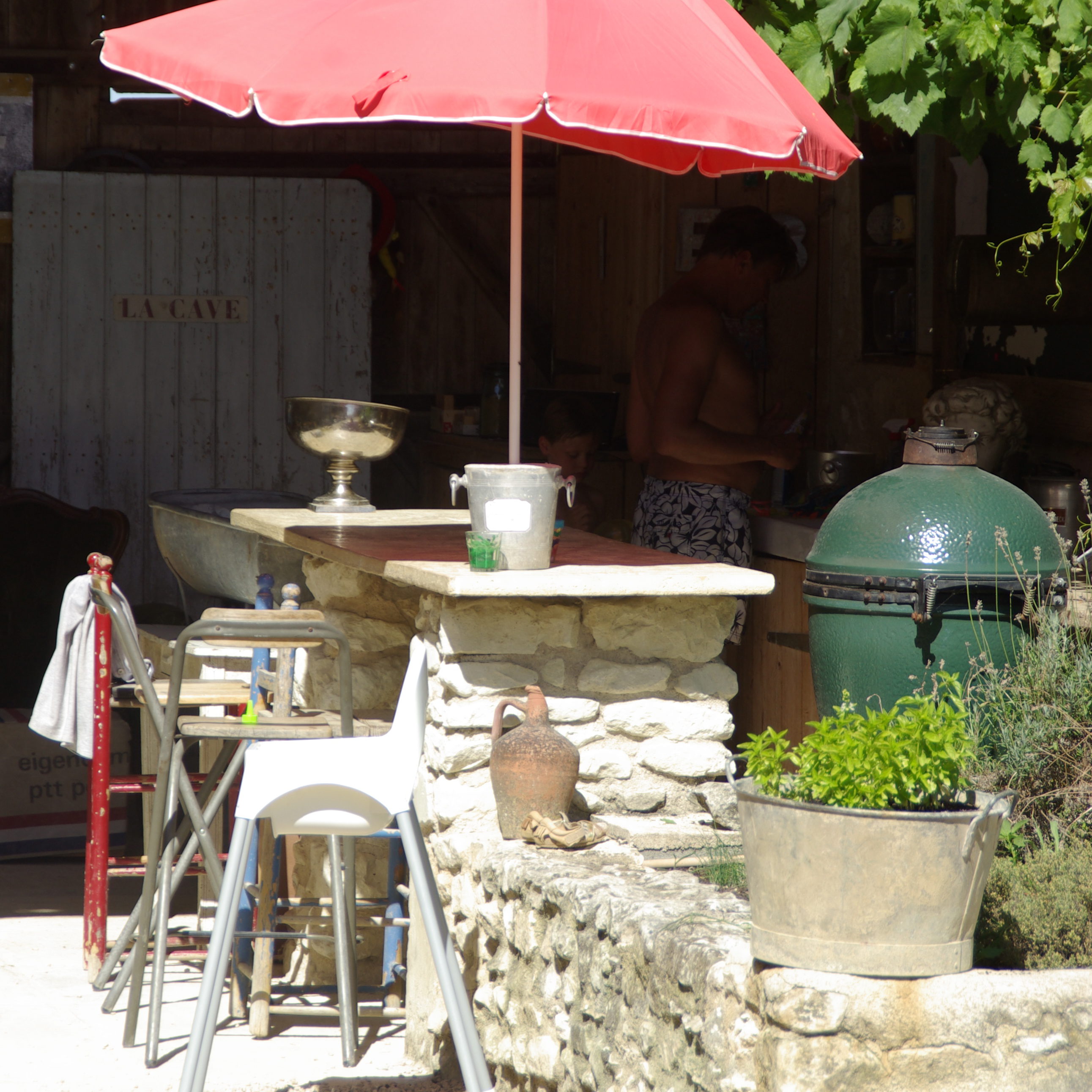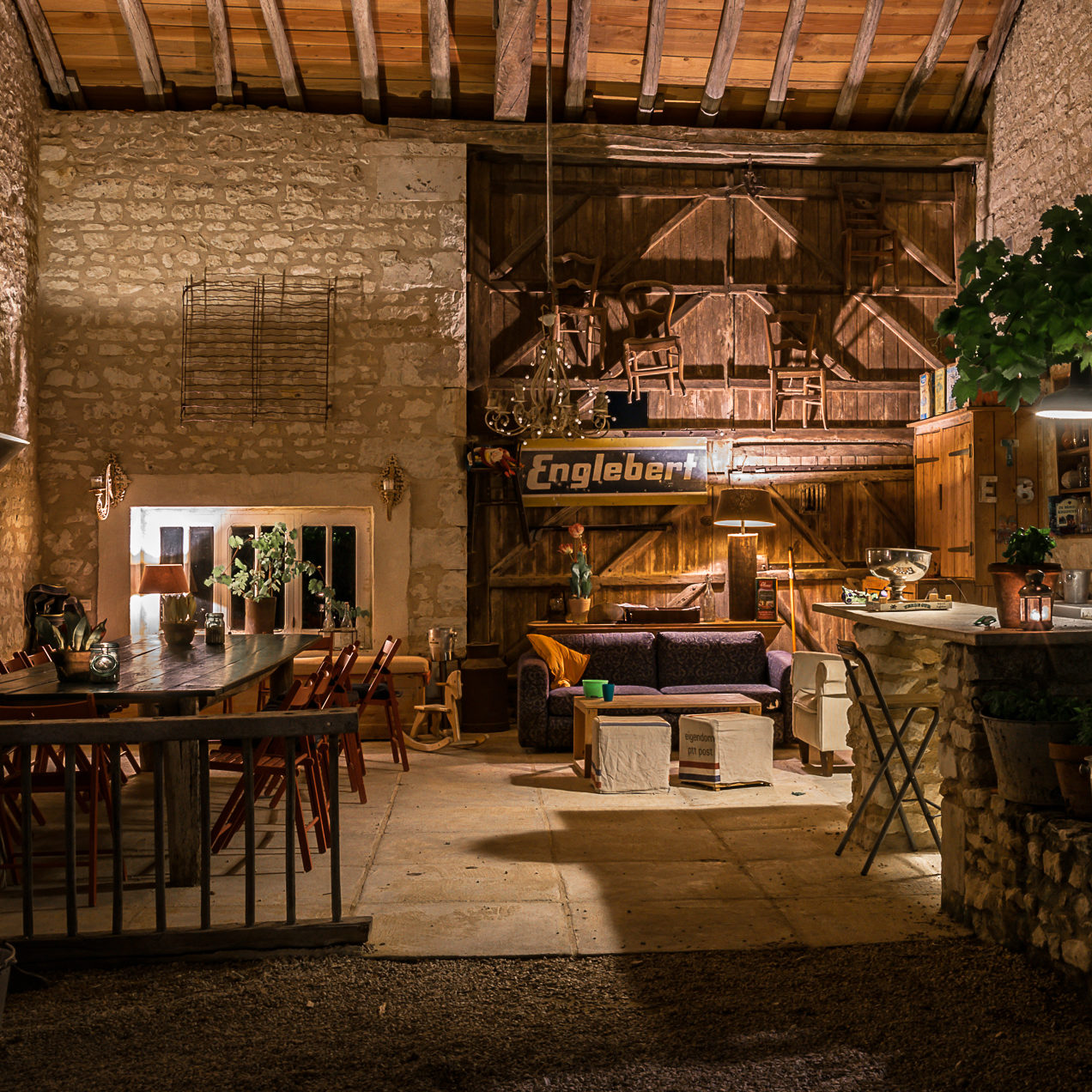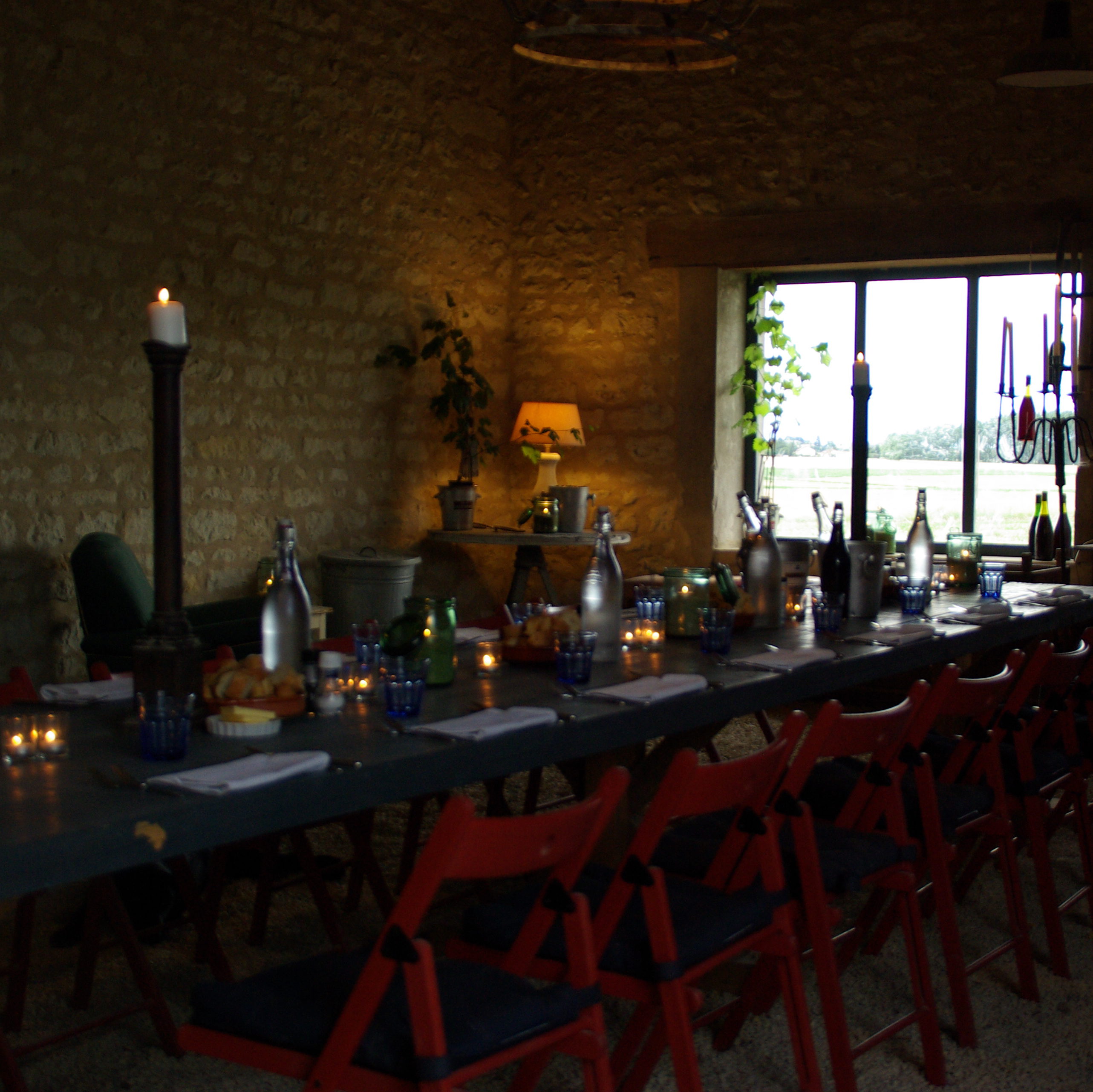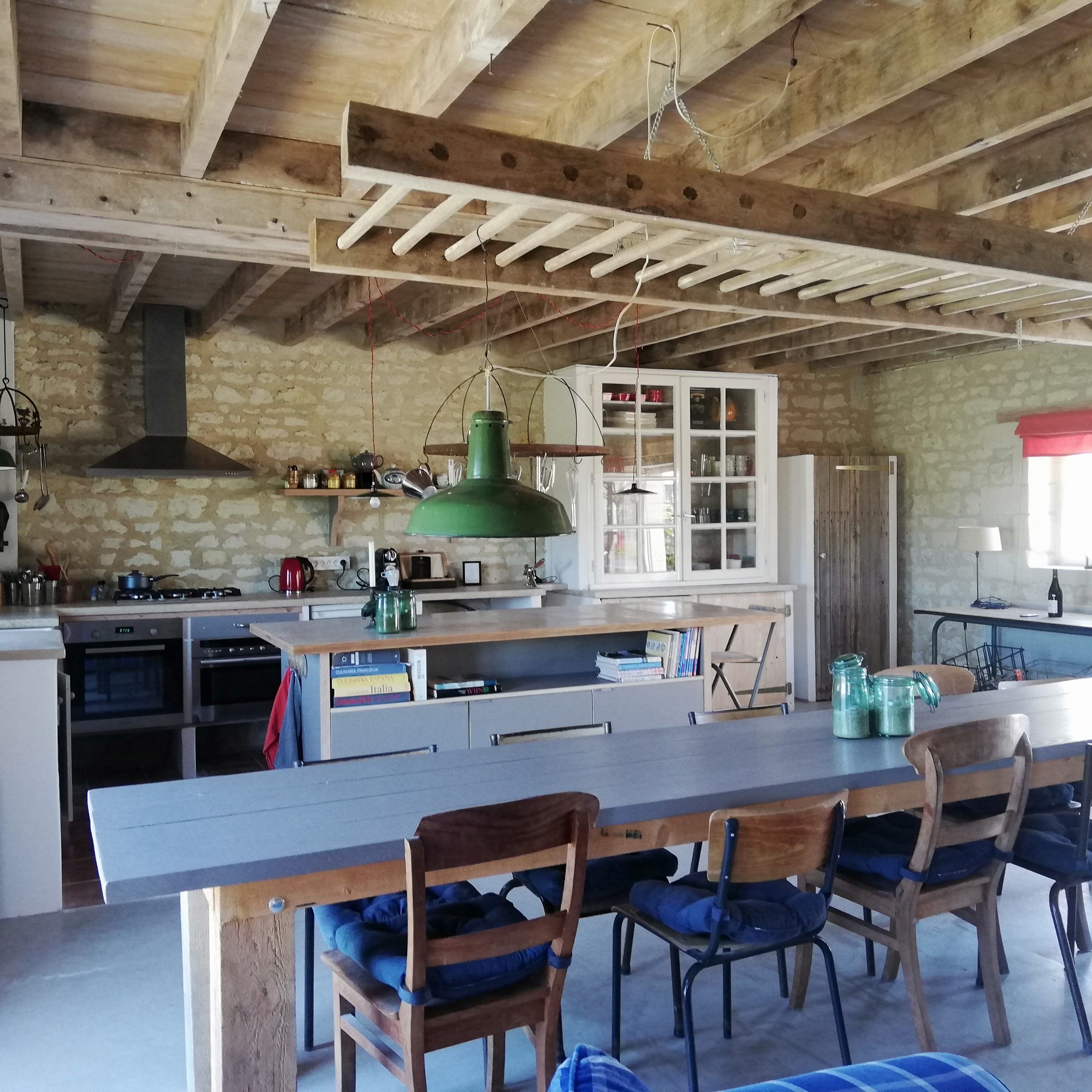 Daarnaast beschikken wij over een gastenkeuken, waar we ‘s-avonds de maaltijd serveren (als het weer het niet toelaat om buiten te zitten) of waar jullie gebruik van kunnen maken op de dagen dat er geen table d’hote is. Maar jullie kunnen hier ook spulletjes bewaren en bereiden voor de lunch.